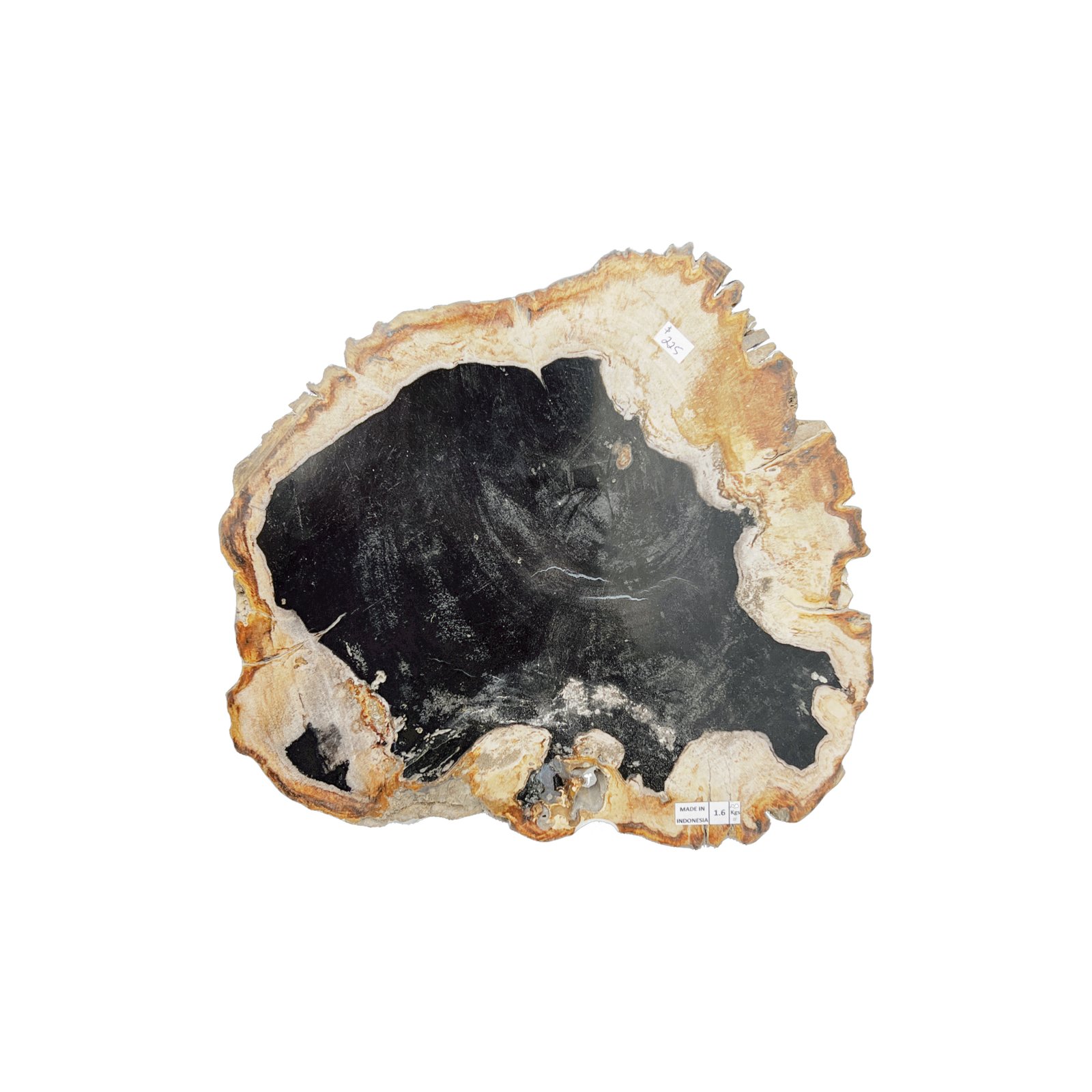 This fossil wood is from an ancient palm tree that lived over 20 million years ago. A cataclysmic action buried this tree in ash causing an anaerobic condition. Over the millennia, ground waters rich in silica entered and fully replaced the cellular structure of the tree, turning it to stone