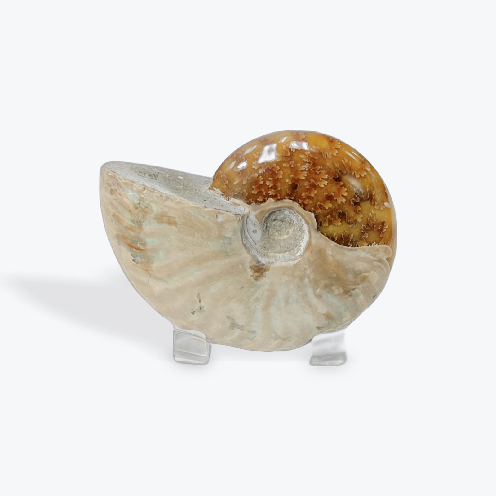This Ammonite was surface polished in Madagascar. It existed in the primordial sea approximately 120 million years ago. The beautiful colours on the surface are caused by the original nacre (mother of Pearl) becoming fused and crystalline over the millennia.